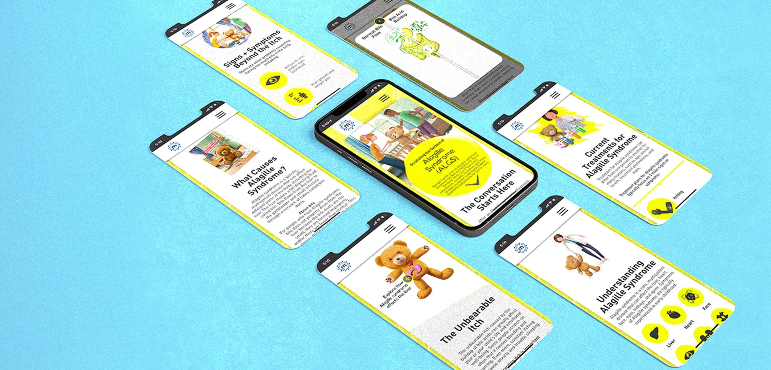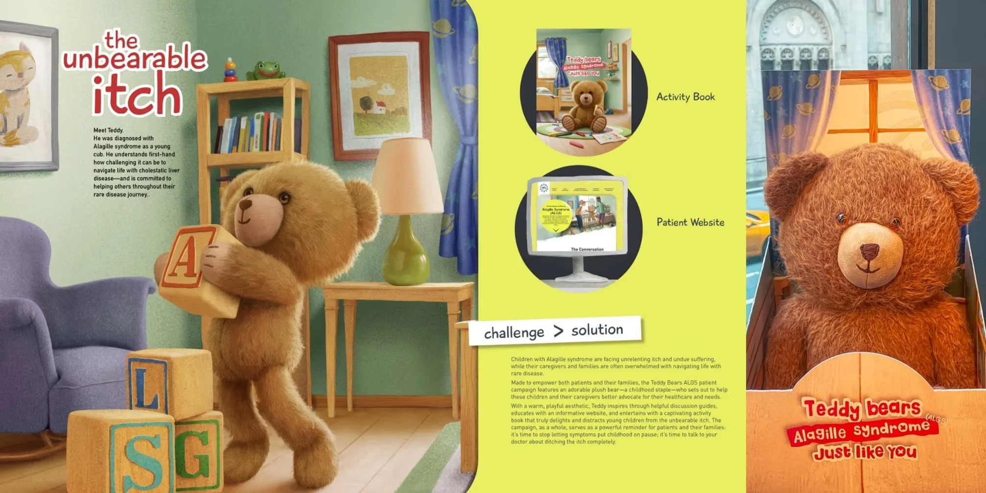 With Teddy Bears Alagille Syndrome, we translated the intensity of the Unbearable Itch campaign into a gentler, more approachable experience for patients and families. Through a caring teddy bear character and softened visuals, the campaign shares the story of Alagille Syndrome with clarity and compassion—helping families better understand the condition while preserving the heart of the original message.